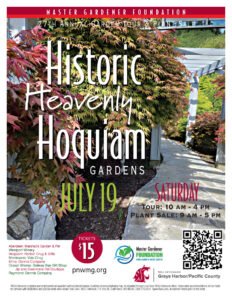 The WSU Master Gardeners of Grays Harbor & Pacific Counties host their 27th Annual Garden Tour, “Historic & Heavenly Harbor Gardens” , in Hoquiam featuring four gardens in sizes from two acres to city-sized lots.