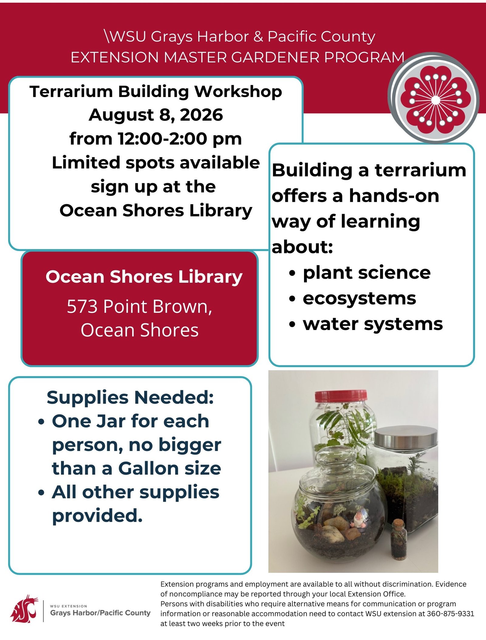 Children and Adult Terrarium Building Workshop. Constructing a terrarium to learn about healthy soil to support the environment, improve agriculture, and mitigate climate change.